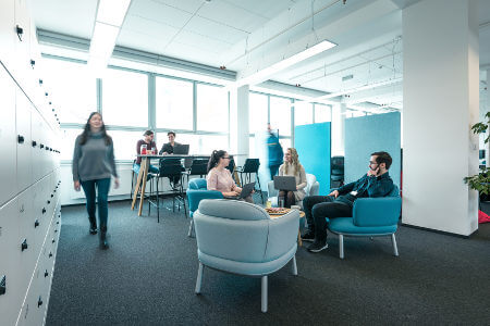 Kromě sedmi pater stylových kanceláří, neformálního posezení, čtyř velkých teras máme i dva páternostery.